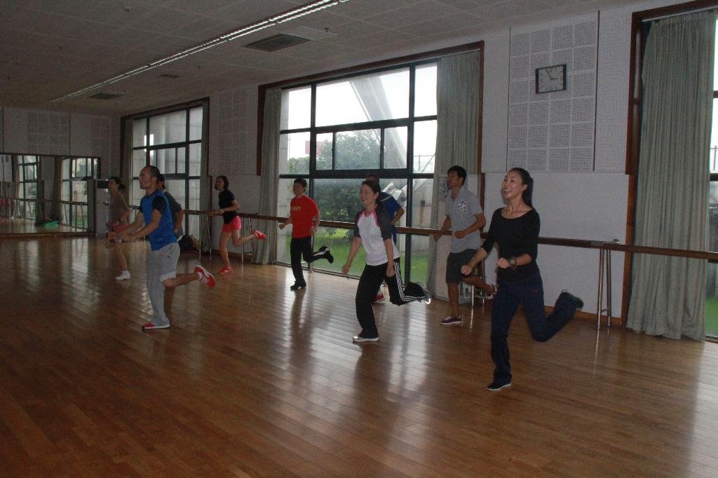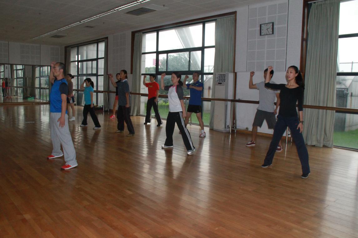 在前期的精心准备下,2013年9月24日下午1:30,体军部如期召开了主题为“体育基础课教学研讨”校级教研活动,主要内容是以探讨一年级武术、健美操教学内容、教学评价为主,主要形式是以集体讨论、集体备课、集体学习为主。参加人员由体军部全体教师组成。整个活动由叶东惠老师主持,姚智勇、应昌达两位老师具体负责实施。具体活动分为两个部分:理论引导、实践演练。活动地点分别安排在:体育馆贵宾室、体育舞蹈房、武术房。