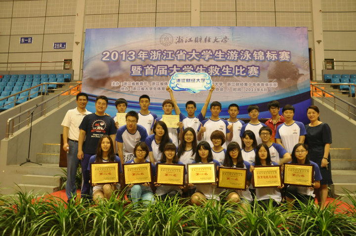 2013年浙江省大学生游泳锦标赛暨首届大学生救生比赛于6月9日在浙江财经大学落下帷幕,本次共有30支队伍参赛。成人在线 共派出了21名优秀的运动员组成的代表队参加比赛。在高手如云的泳池里,成人在线 游泳健儿们凭借刻苦训练的高超技术,以及奋勇拼搏的精神最终夺得甲组11金、12银、4铜、团体总分266分,在金牌总数和团体总分上全部位列全省第一名;同时丁组也夺得5金、3银、3铜的优异成绩。这是成人在线 游泳队建队以来取得的最佳战绩,更奠定了成人在线 竞技游泳水平在全省的领先地位,完成了历史性的突破!