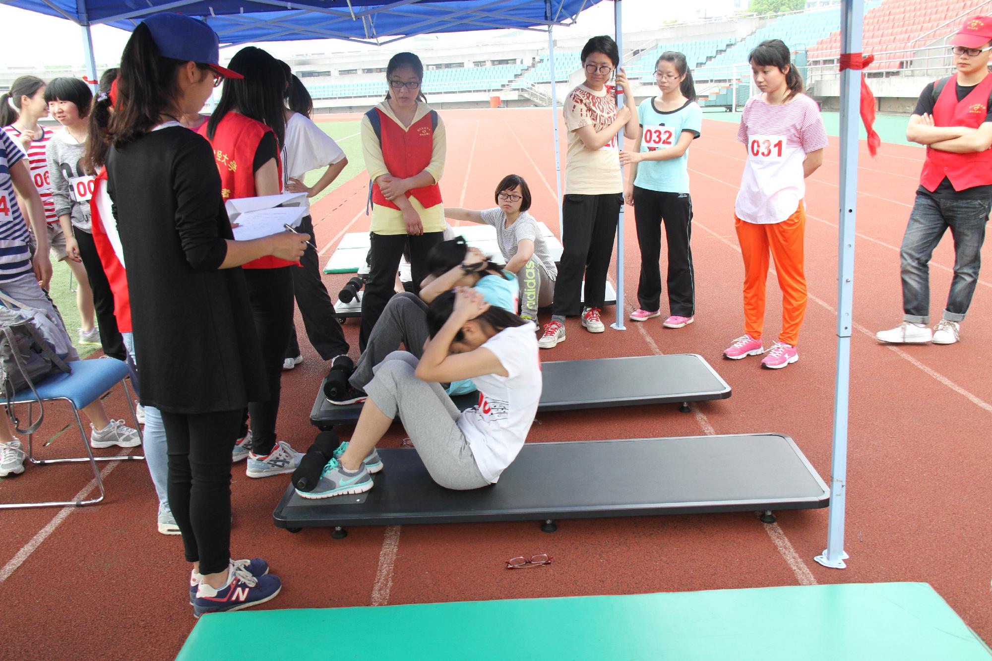 200名大三学生参加体质健康状况抽测,近10名教师及20位志愿者参与此项工作,体军部主任亲临现场指导。