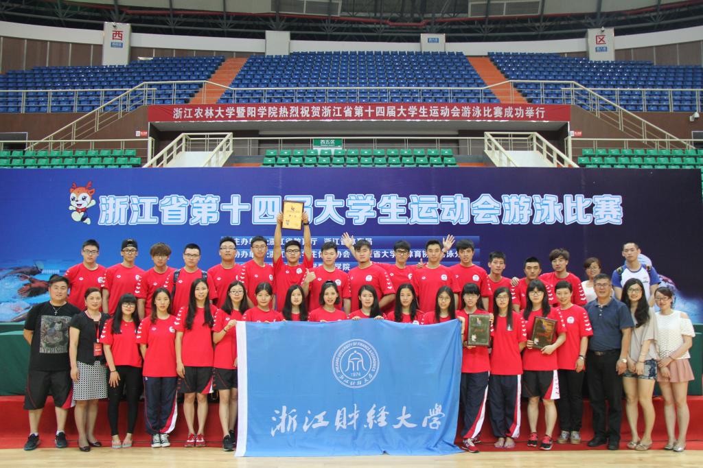 代表队分为甲丁两组共28名运动员参加本次比赛。赛前在左宇飞和严蓓两位教练的科学系统训练下,队员们放弃了大量的休息时间,妥善处理好学习和训练的关系,进行了大运动量的集训备战。在赛场上面对各支劲旅,沉着应战,奋力拼搏,赛出风格,赛出水平。在比赛期间,充分展示了财大学子的勇争第一、追求卓越的良好品质与精神,取得了甲组团体第一(19金2银6铜)、丁组团体第一(7金5银7铜),共26金7银13铜的历史性佳绩,其中甲组破7项省大学生游泳比赛最高纪录、破9项省大运会赛会纪录,刮起大运泳坛“红色”旋风,赢得了其他参赛队伍的连连赞叹。同时,运动队还获得了“体育道德风尚奖”的荣誉称号,左宇飞老师获得了“优秀教练员”称号。