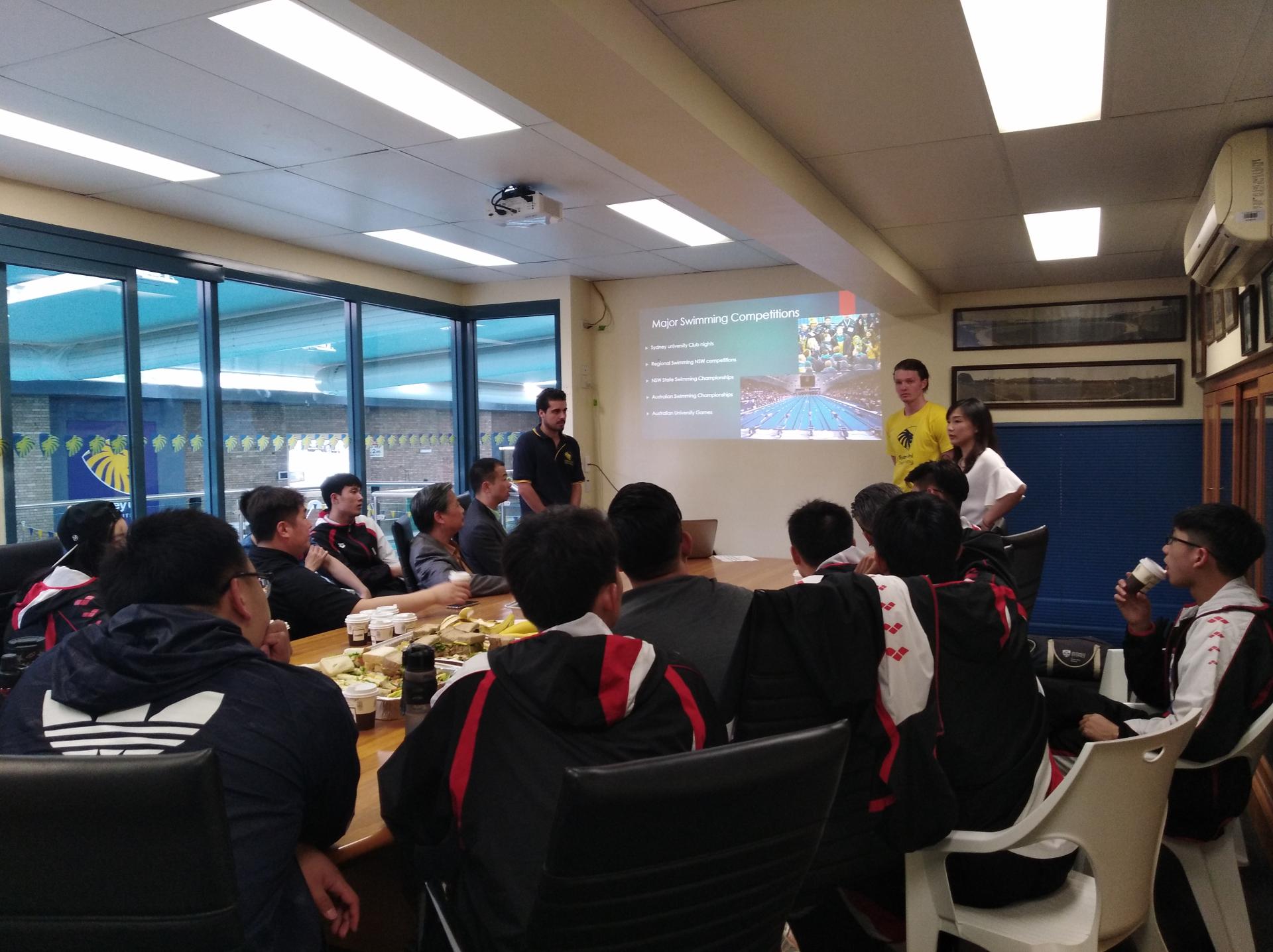 游泳代表团在访问悉尼大学期间,受到了悉尼大学体育中心负责人、游泳队管理团队的热烈欢迎。悉尼大学相关人员陪同成人在线