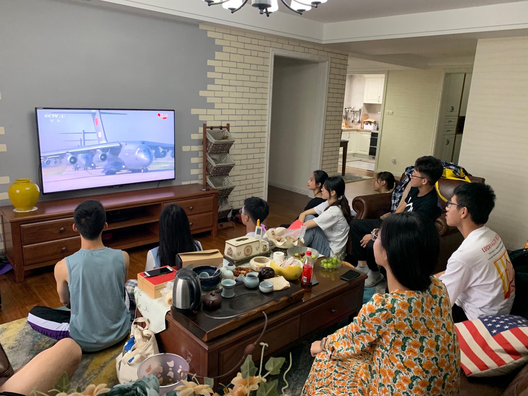 观看过程中,运动员们深情投入、全神贯注,深刻感受此次大会所带来的震撼。气势磅礴的阅兵分列式,各种新型军事装备的精彩亮相,让运动员们热血沸腾,由衷地感叹祖国的强大!