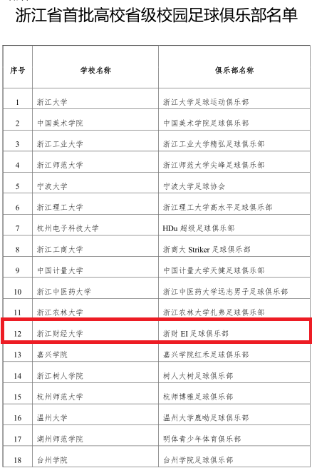 近日,省教育厅公布了浙江省首批高校省级校园足球俱乐部名单,成人在线