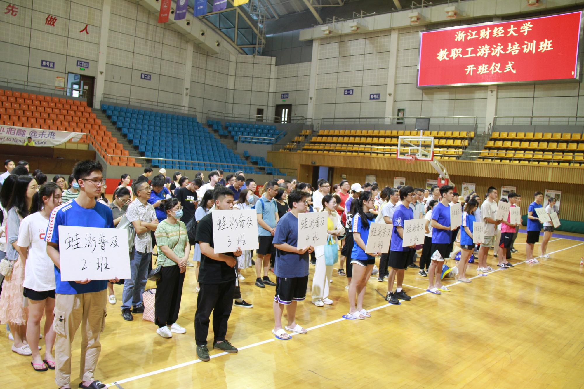 2022年教职工春季游泳培训班开班。校长钟晓敏、校工会常务副主席李训茂、教练员、参训教职工等出席开班仪式,开班仪式由成人在线