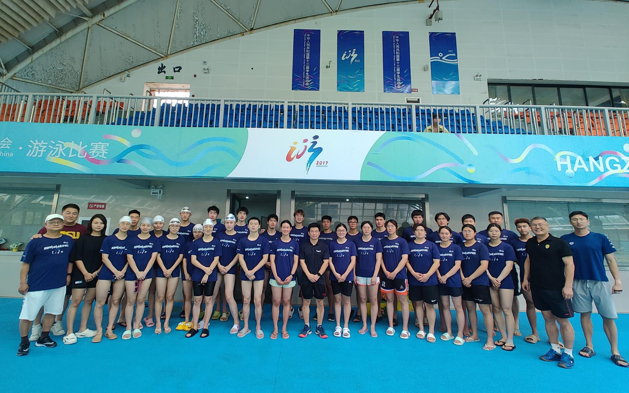 为备战第一届全国学生(青年)运动会,浙江省大学生游泳队在成人在线