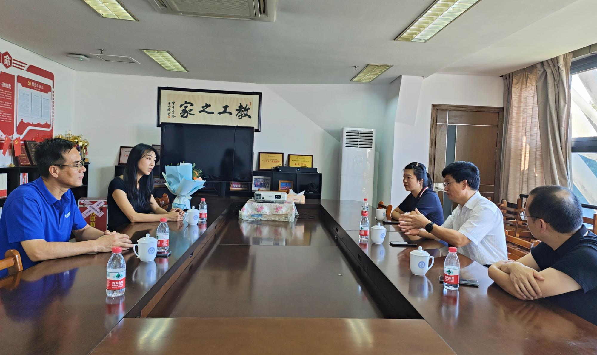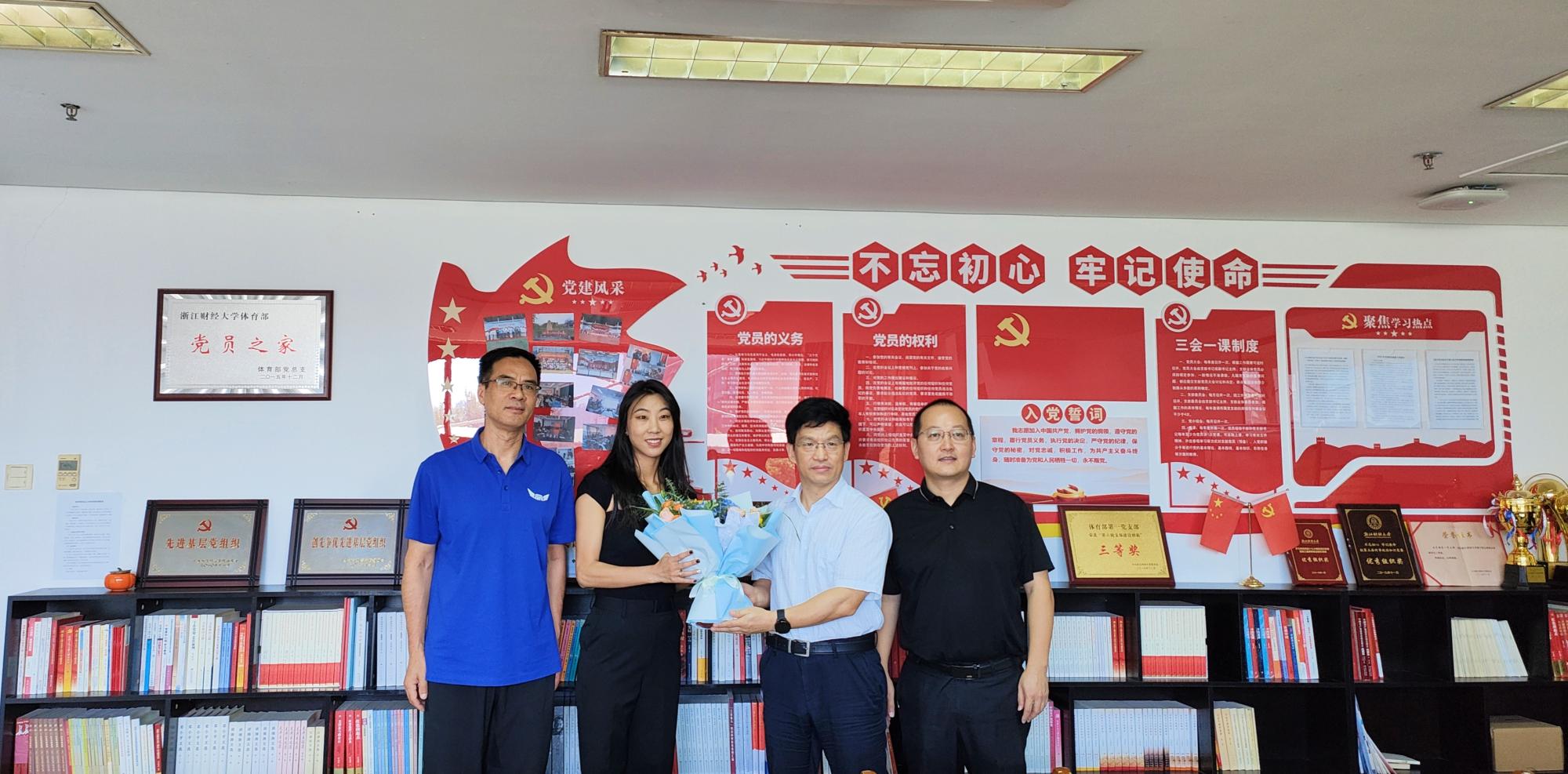 董进才副校长向黄芬芬老师献上鲜花,感谢其为成人在线 体育事业及体育舞蹈项目的辛勤努力与付出。同时,董校长热情询问了成人在线 暑期工作及开学准备情况,并充分肯定了成人在线 的体育工作。