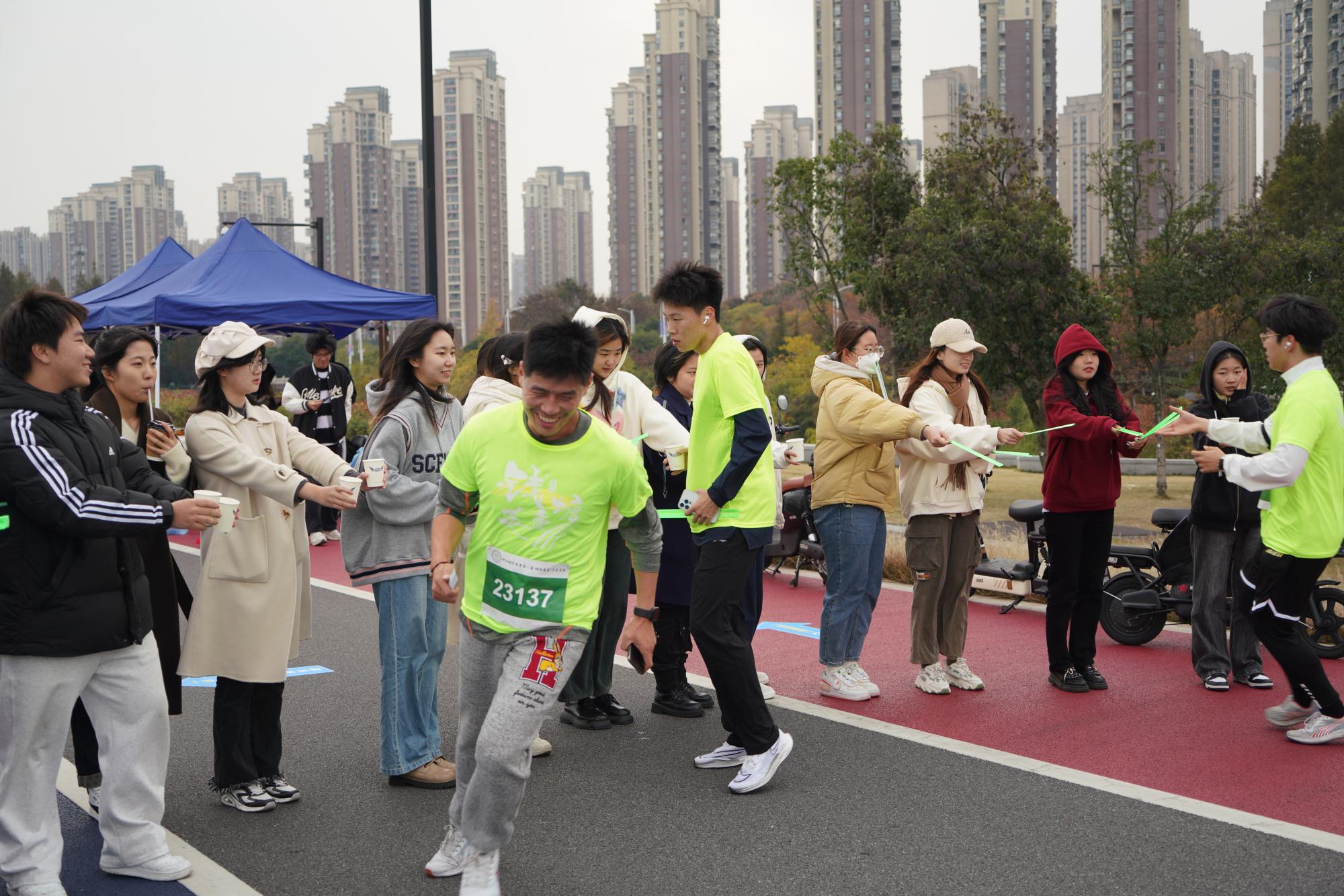 Spinning体育舞蹈协会舞蹈《Latin girl》和校流音工作室的歌曲《造亿万顿光芒》为万米长跑营造了热情活泼的氛围,冬日校园热血沸腾,钱塘江畔激情四射。随后,竞技组、教职工组、大众组依次出发,沿成人在线
