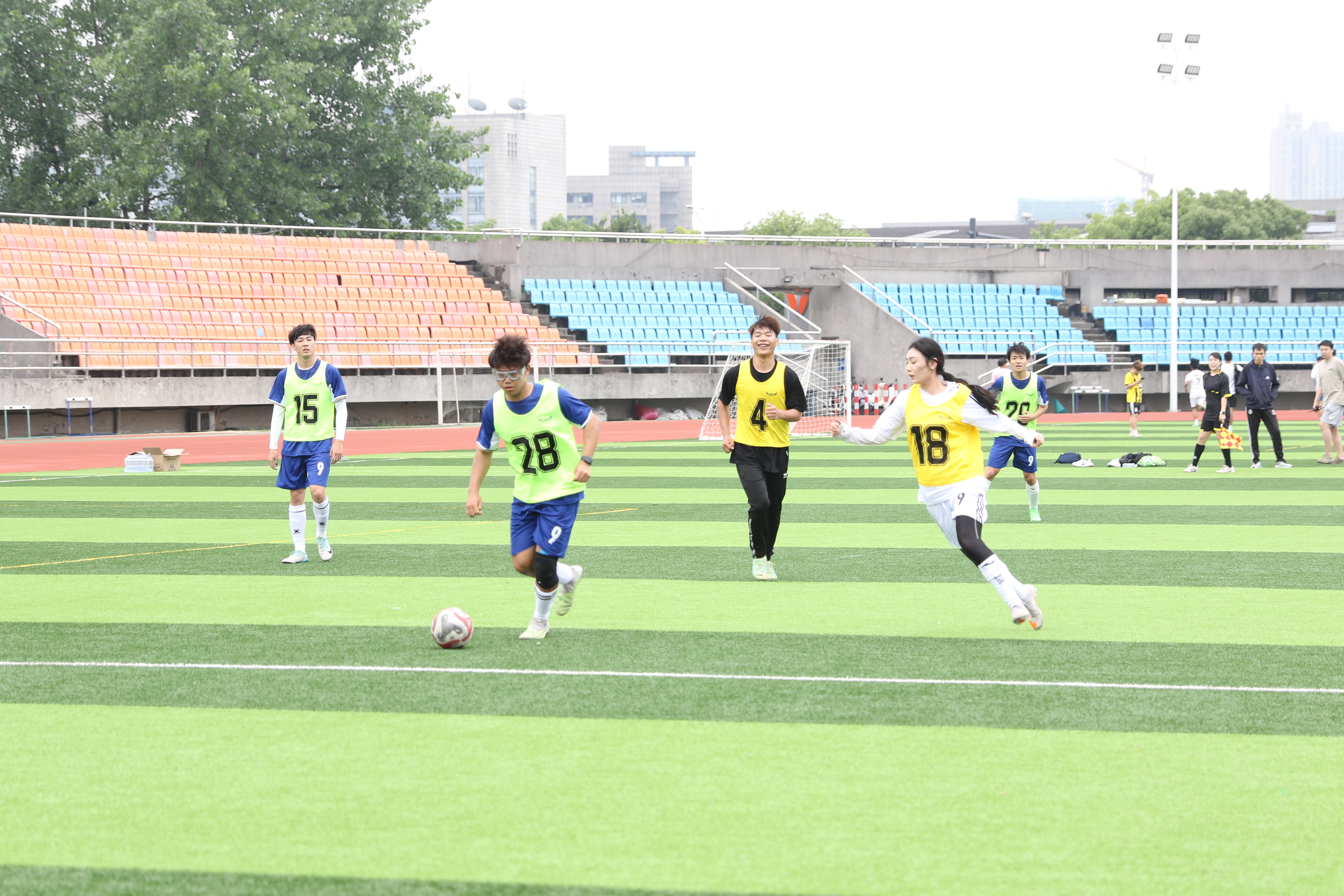 女子足球队与国际学院及足球俱乐部组成的代表队开展友谊赛。