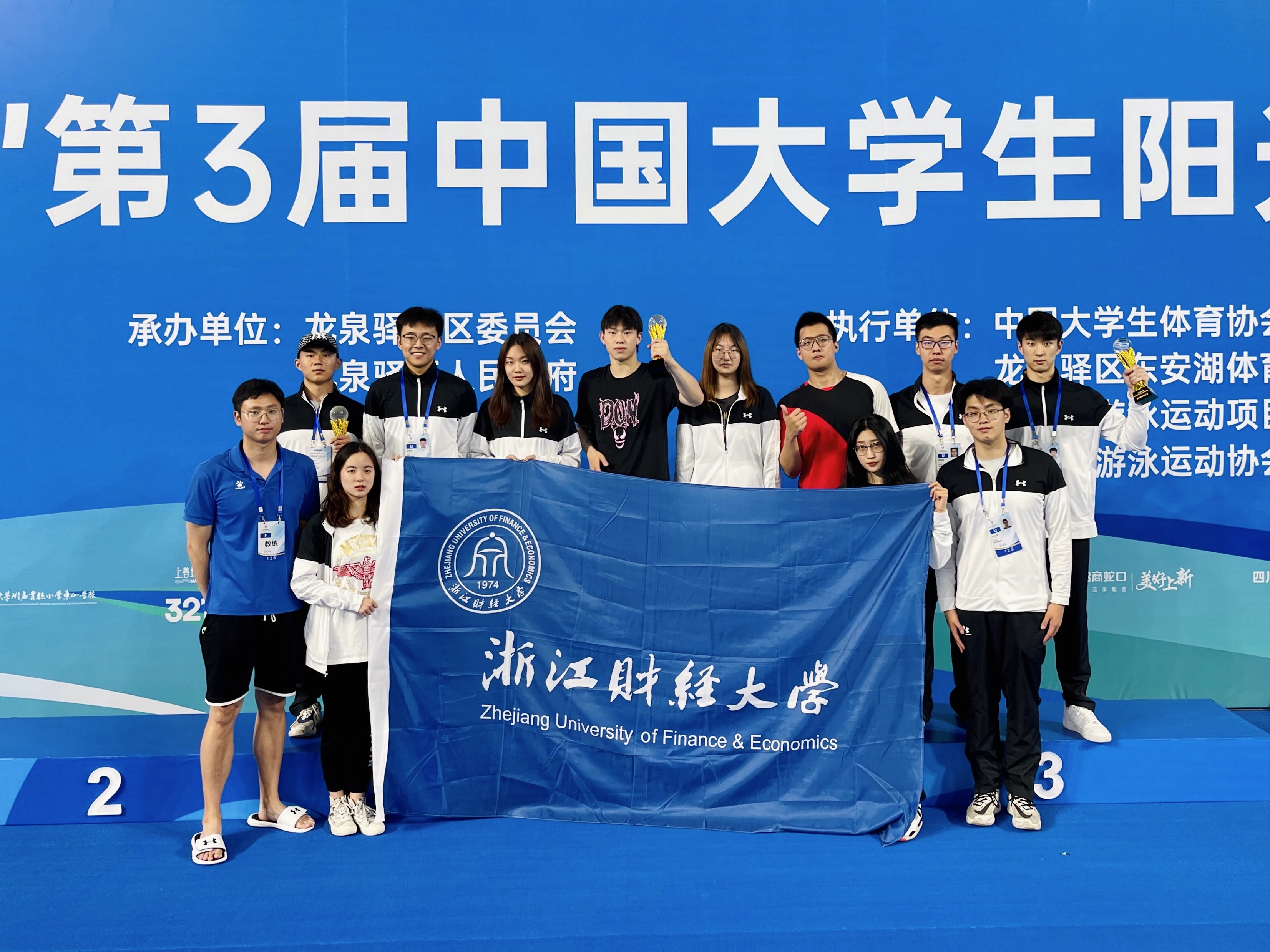 在教练施浩然的指导下,游泳阳光队摘得3金2银3铜,获团体总分第二名、男子团体总分第三名、女子团体总分第四名的优异成绩。来自会计学院的李冬睿同学打破男子200米混合泳、男子200米蝶泳两项赛会记录。成人在线
