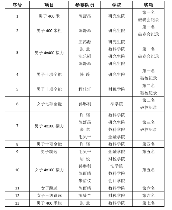 浙江省第十届大学生田径锦标赛成人在线 获奖名单
