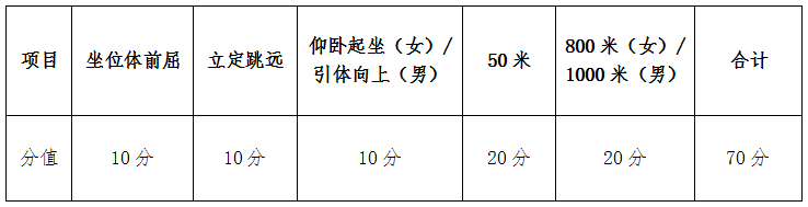 课余体育锻炼(100分)=晨跑(40分)+自由跑(60分),晨跑12次40分为必备内容(必须完成晨跑12次,否则课余体育锻炼0分),自由跑30次60分为选项内容,且晨跑与自由跑次数不能相互转换,课余体育锻炼占体育课程成绩18分。