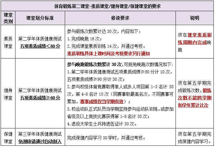 三、【体育锻炼】第二课堂修读要求