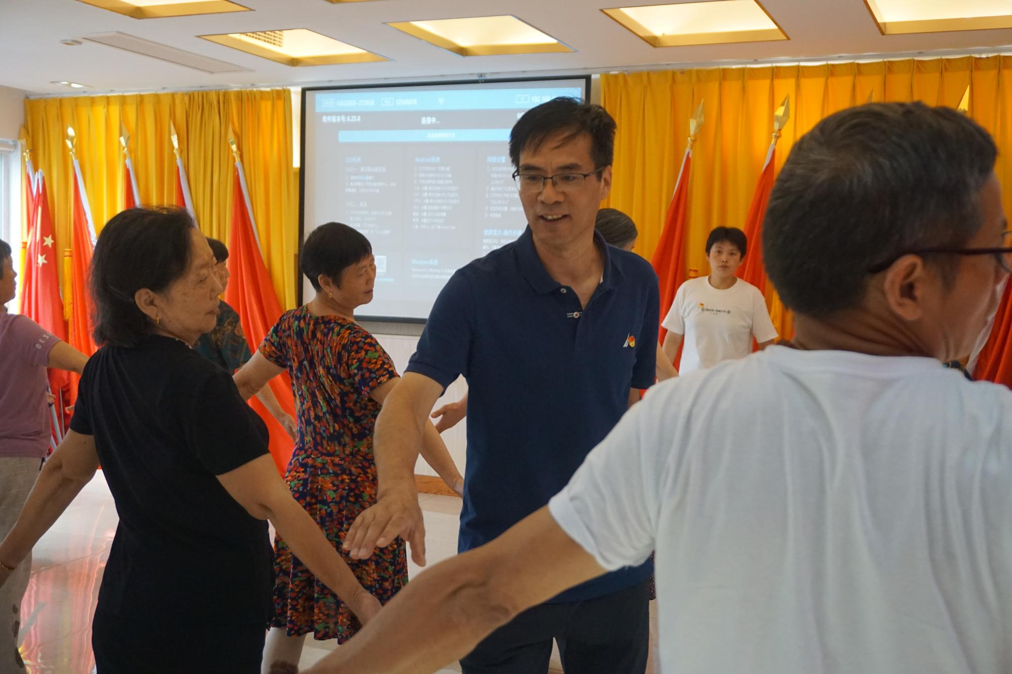 居民们认真体会,潜心练习,表现出极大的热情和兴趣,不时的与老师们交流,纠正动作细节。经过一个下午的学习,居民们逐步掌握了八段锦的动作要领,基本可以跟随示范,进行整套功法的练习。