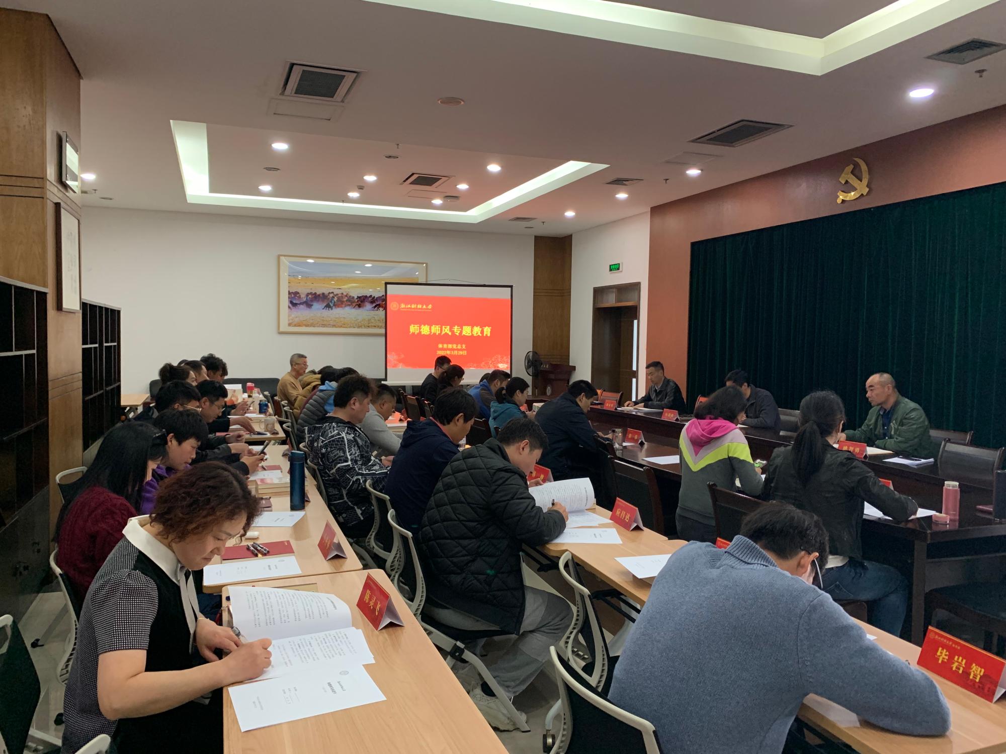 党总支书记汤慧炎带领全体教师认真学习了《新时代高校教师职业行为十项准则》,从坚定政治方向、自觉爱国守法、传播优秀文化、潜心教书育人、关心爱护学生、坚持言行雅正、遵守学术规范、秉持公平诚信、坚守廉洁自律、积极奉献社会等方面明确教师自身责任。