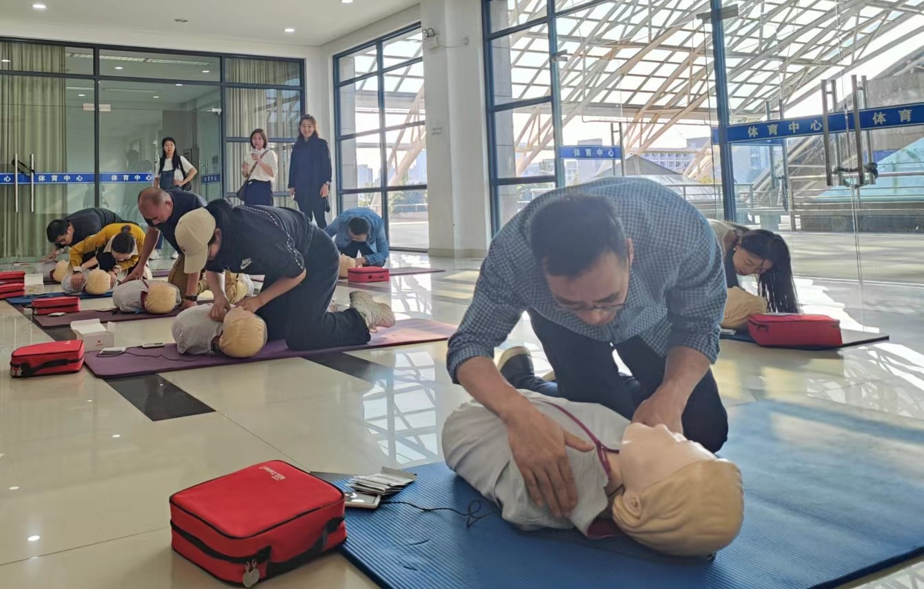 随后,培训人员现场演示了心肺复苏和AED除颤的实操步骤。大家在专业指导下积极进行模拟实验,在实践中进一步熟悉急救步骤、规范操作细节。