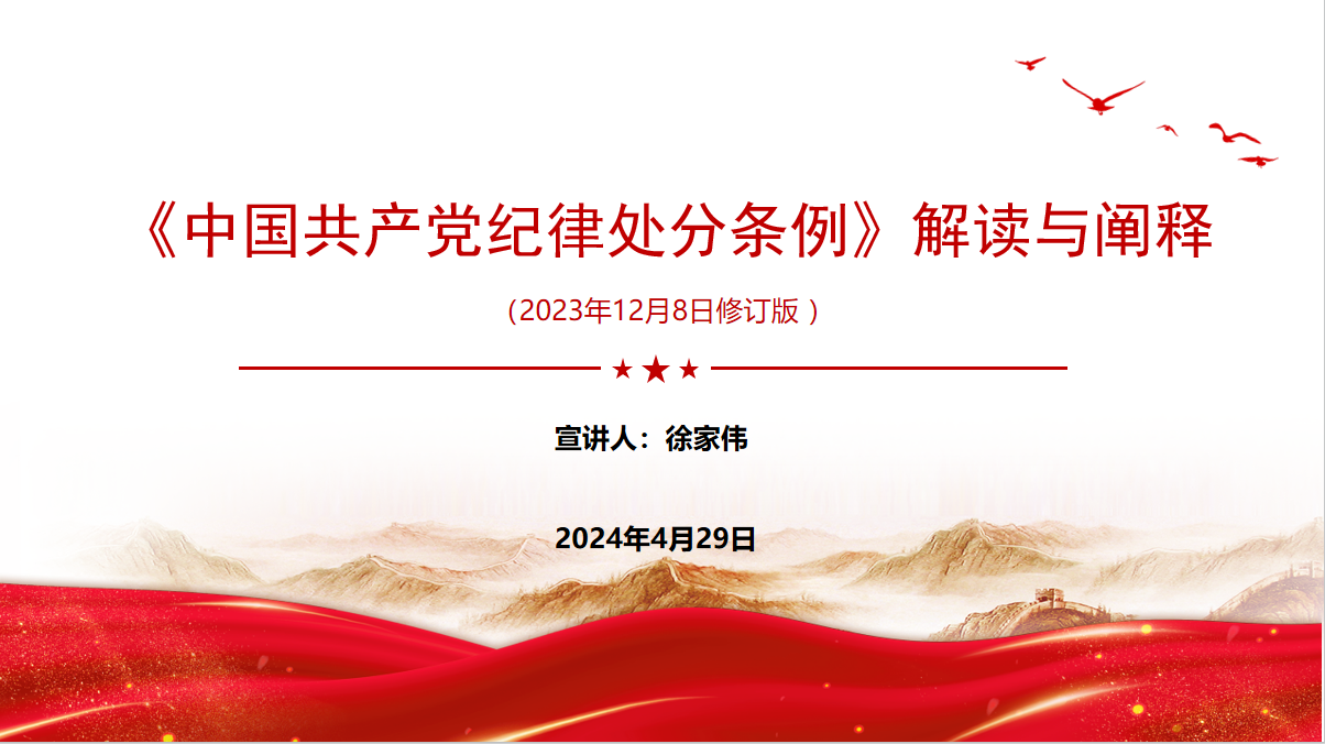 党员上党课,各党支部书记围绕党纪教育要求,讲授了《恪守“六大纪律” 筑牢思想根基》专题党课,详细解读了“六大纪律”的主要内容和主要违纪行为,并结合《党员干部纪律教育案例》,以案释纪,让党员们深刻认识到遵守党纪的重要性;组织党员观看了警示教育片《不守小节 难保大德》,通过典型违纪案例让党员们受警醒,明底限,知敬畏。各支部书记还在活动中强调,党员同志要原原本本地学习《条例》,做到学深悟透,内化于心,外化于行。
