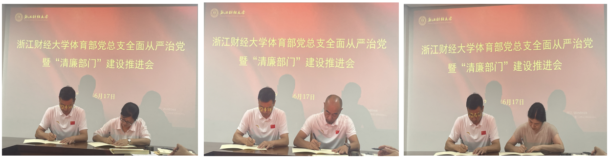 与会人员结合岗位实际,开展廉政风险排查,进一步完善了成人在线 廉政风险防控信息库。成人在线 党总支书记徐家伟与班子成员签订了《党风廉政建设责任书》,党支部书记、中心主任和办公室主任签订了《廉洁自律承诺书》。