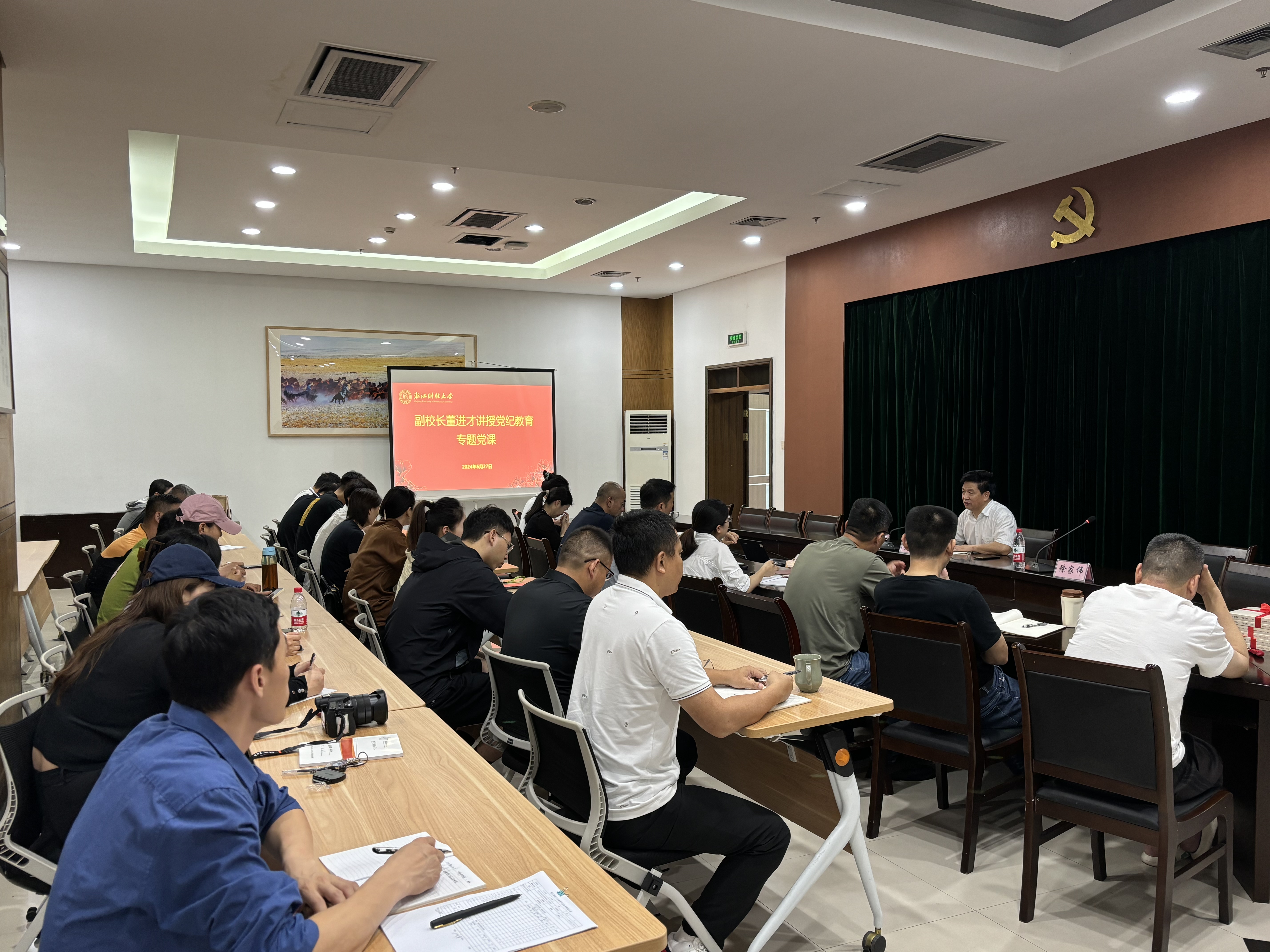 组织全体党员举办“肃党纪 强党性 迎七一”主题党日活动。校党委委员、副校长董进才应邀出席活动并讲授党纪教育专题党课。会议由成人在线